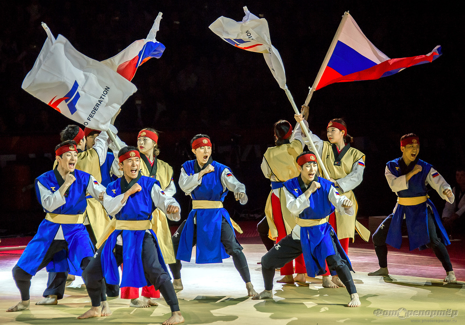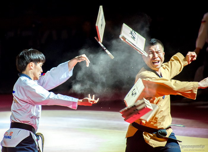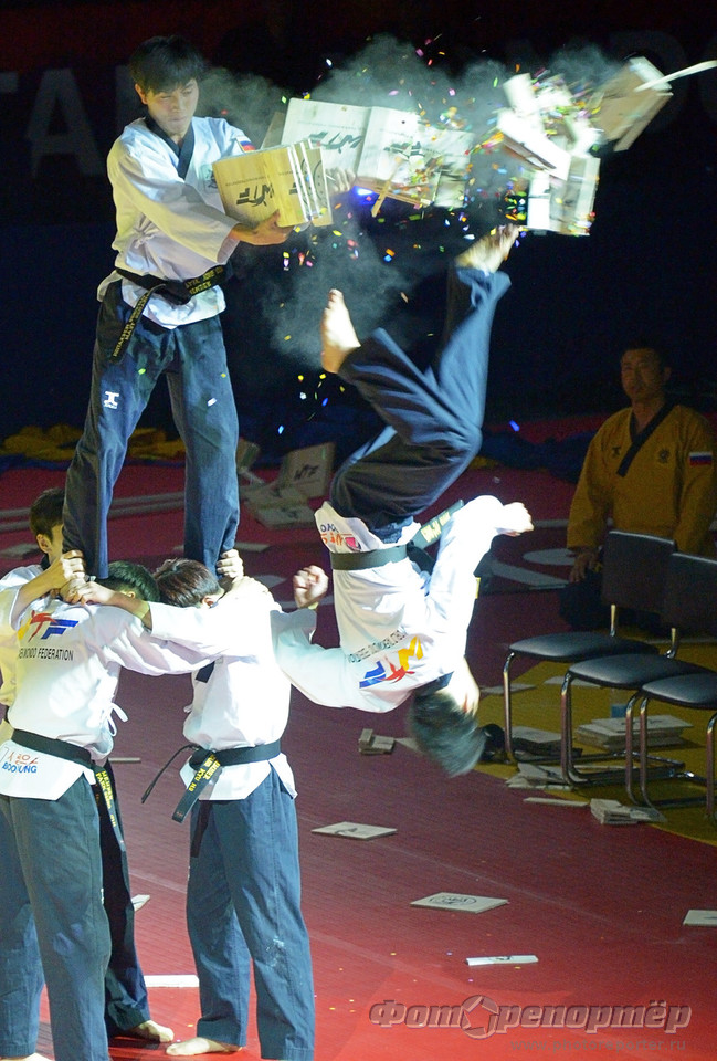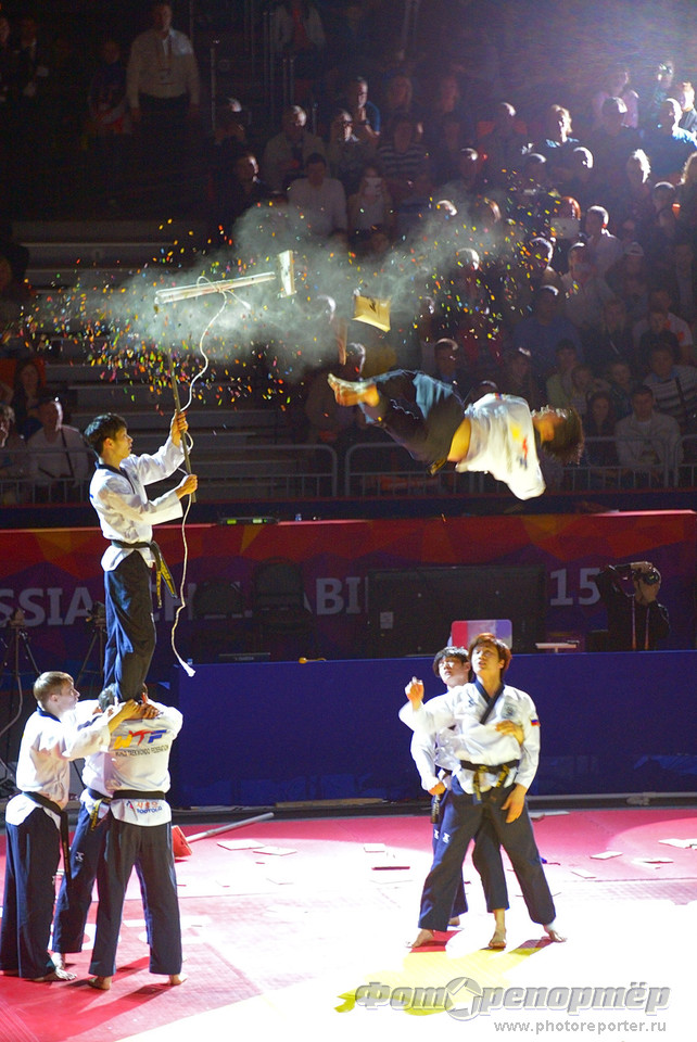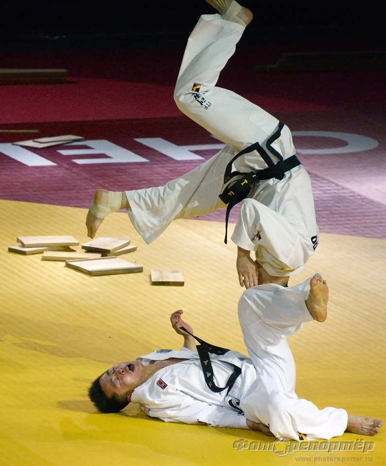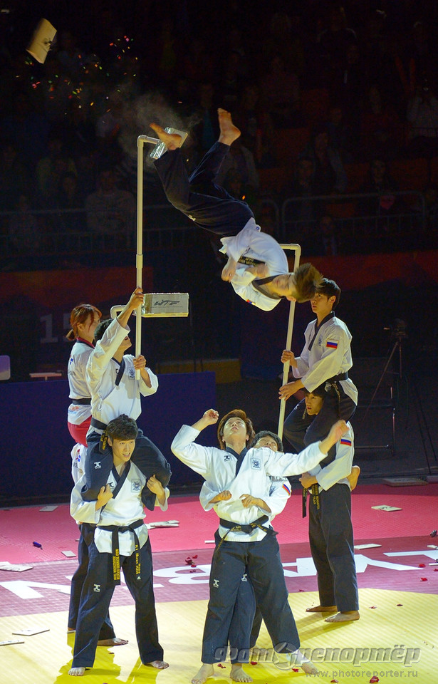 Открытие Чемпионата мира по тхеквандо в Челябинске. Показательные выступления команды Северной Кореи.