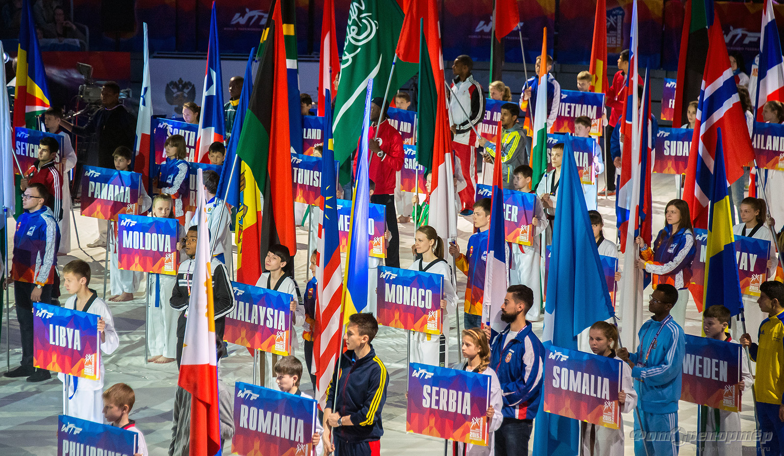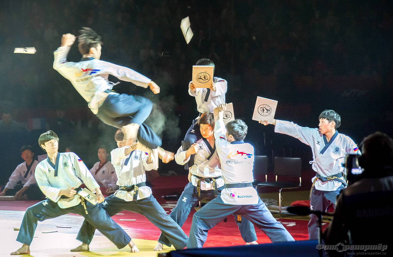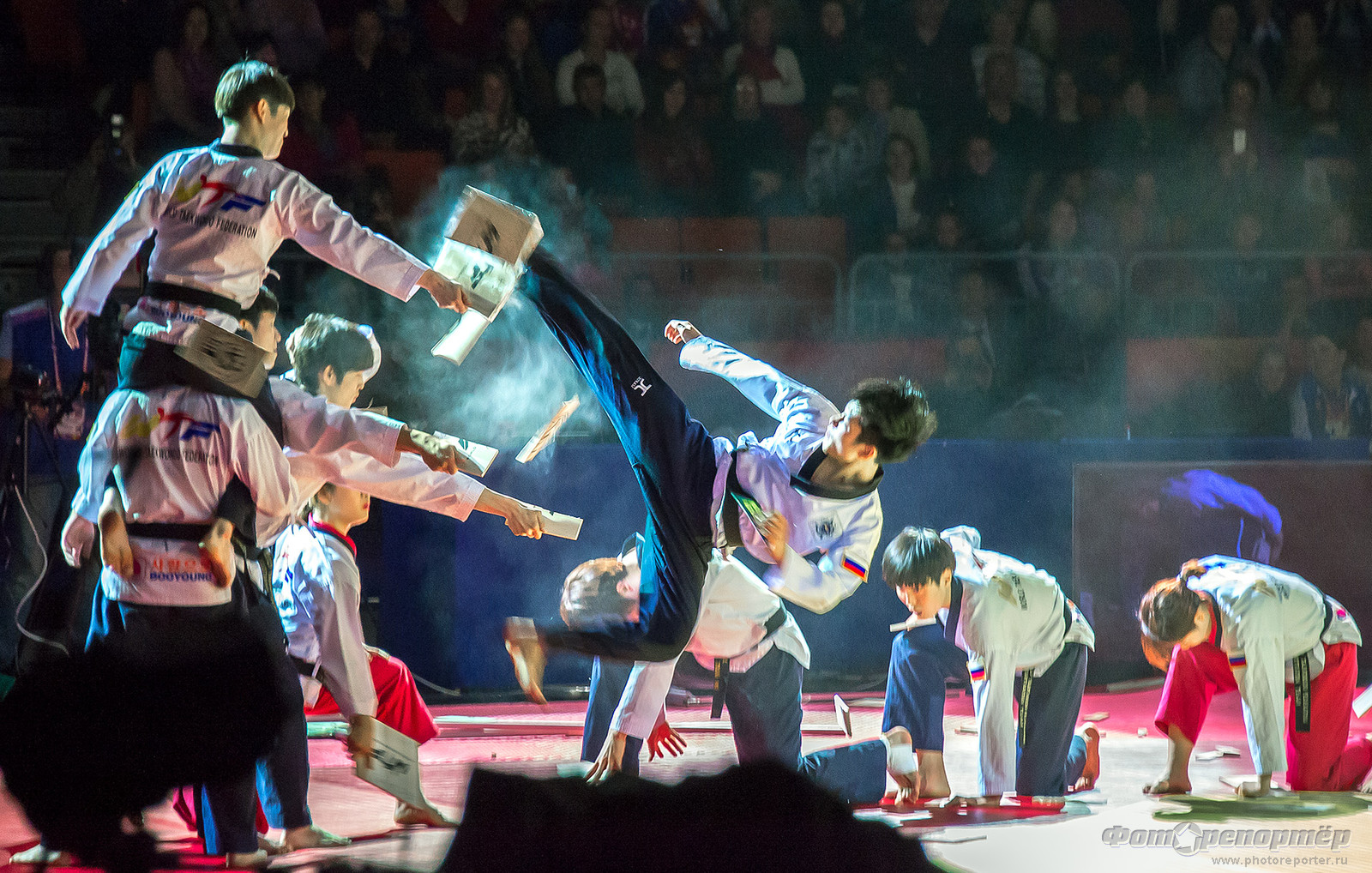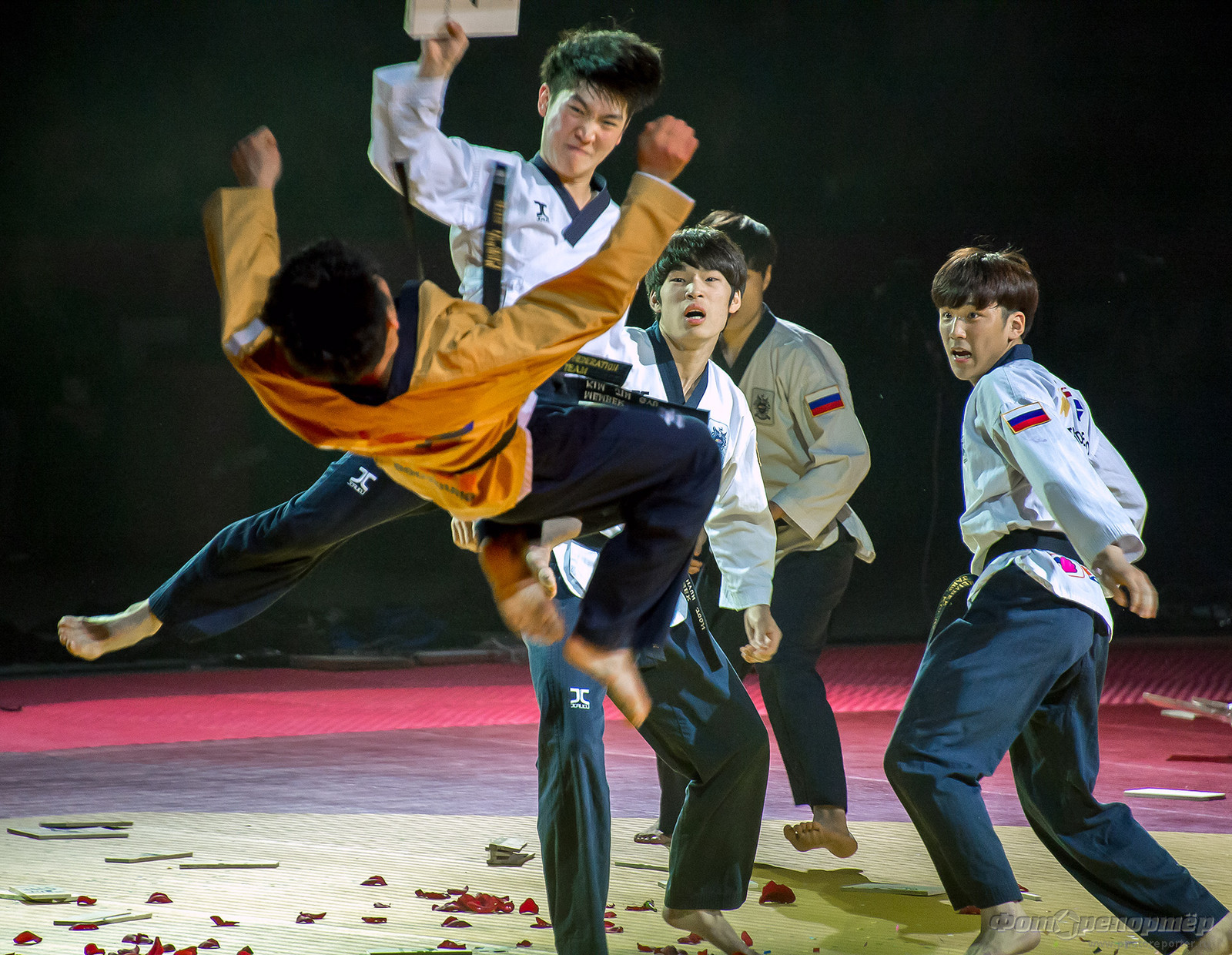 Открытие Чемпионата мира по тхеквандо в Челябинске. Показательные выступления команды Северной Кореи.