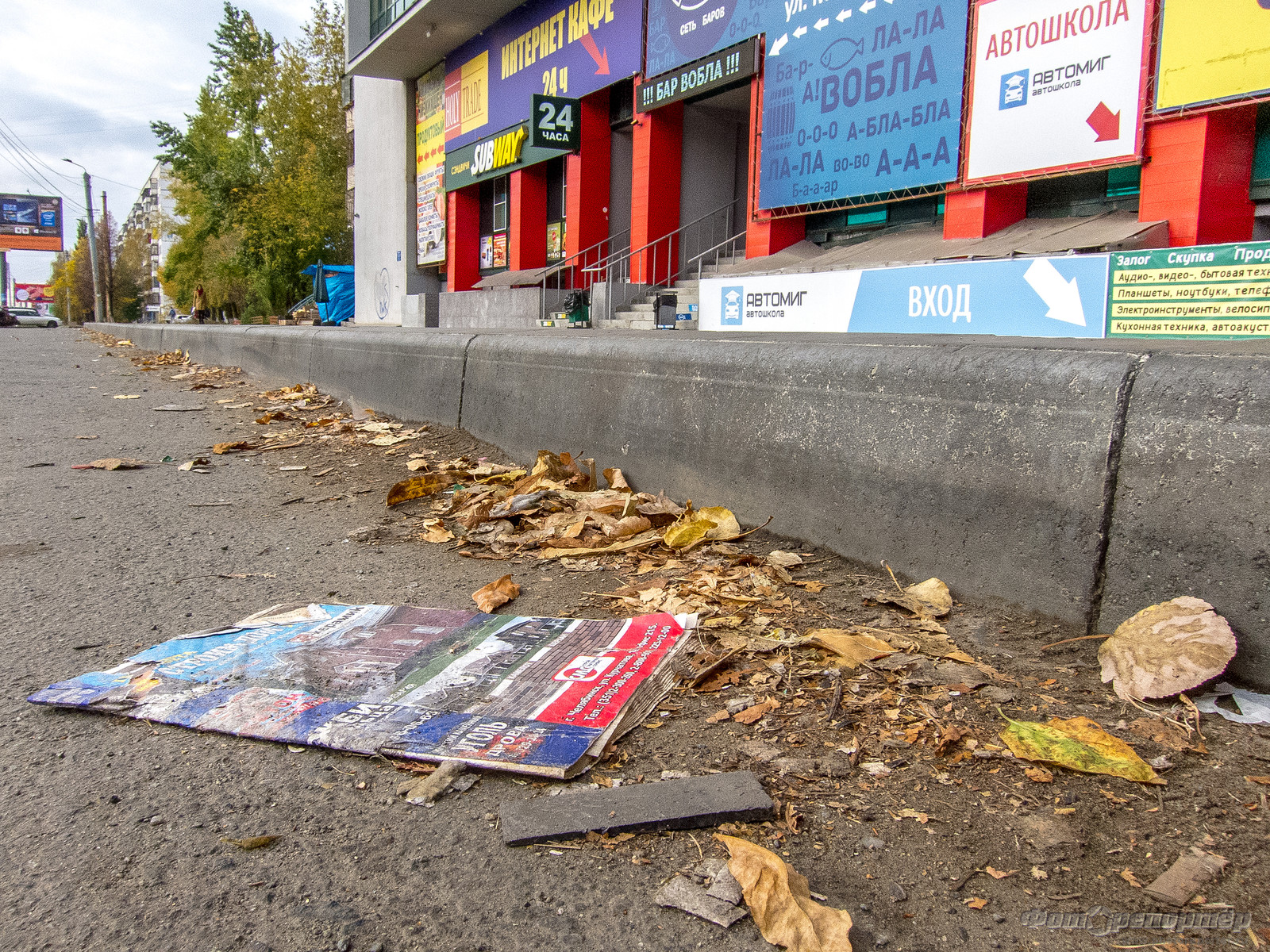 Я очень надеюсь, что вы, Евгений Николаевич, имеете хоть какие-то полномочия, и сможете прибраться на одной из главных улиц города. Хотя бы к выборам. Очень надеюсь, что вы из-за этого некрасиво выражаться не станете.