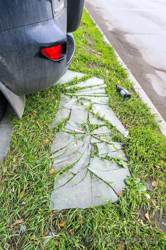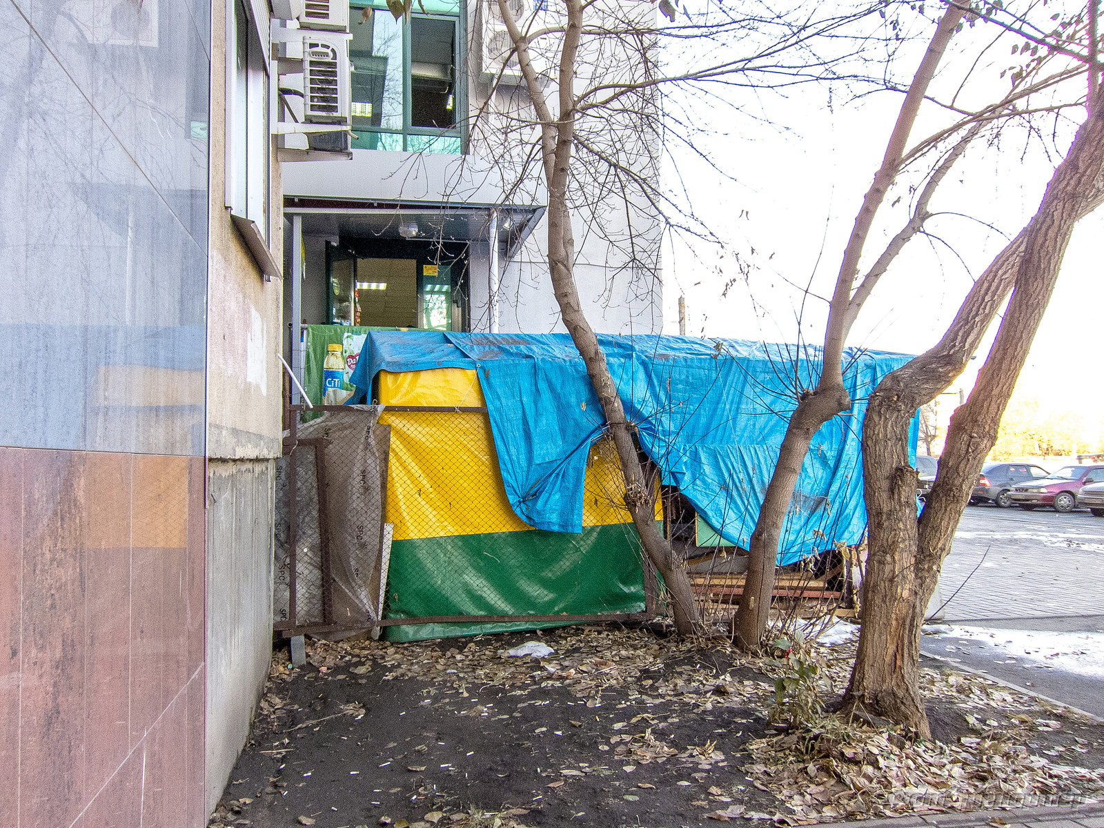И это не какие-то окраины и новостройки. Это дом, примыкающий к гостинице «Виктория». Это самый оживлённый перекрёсток Северо-Запада. Плотность населения здесь одна из самых высоких в городе. И гости города, не бедные гости, проживающие в Виктории, ежедневно перешагивают через это безобразие. На этой площадке ежедневно паркуются сотни автомобилей, и жителей города, и приезжих.