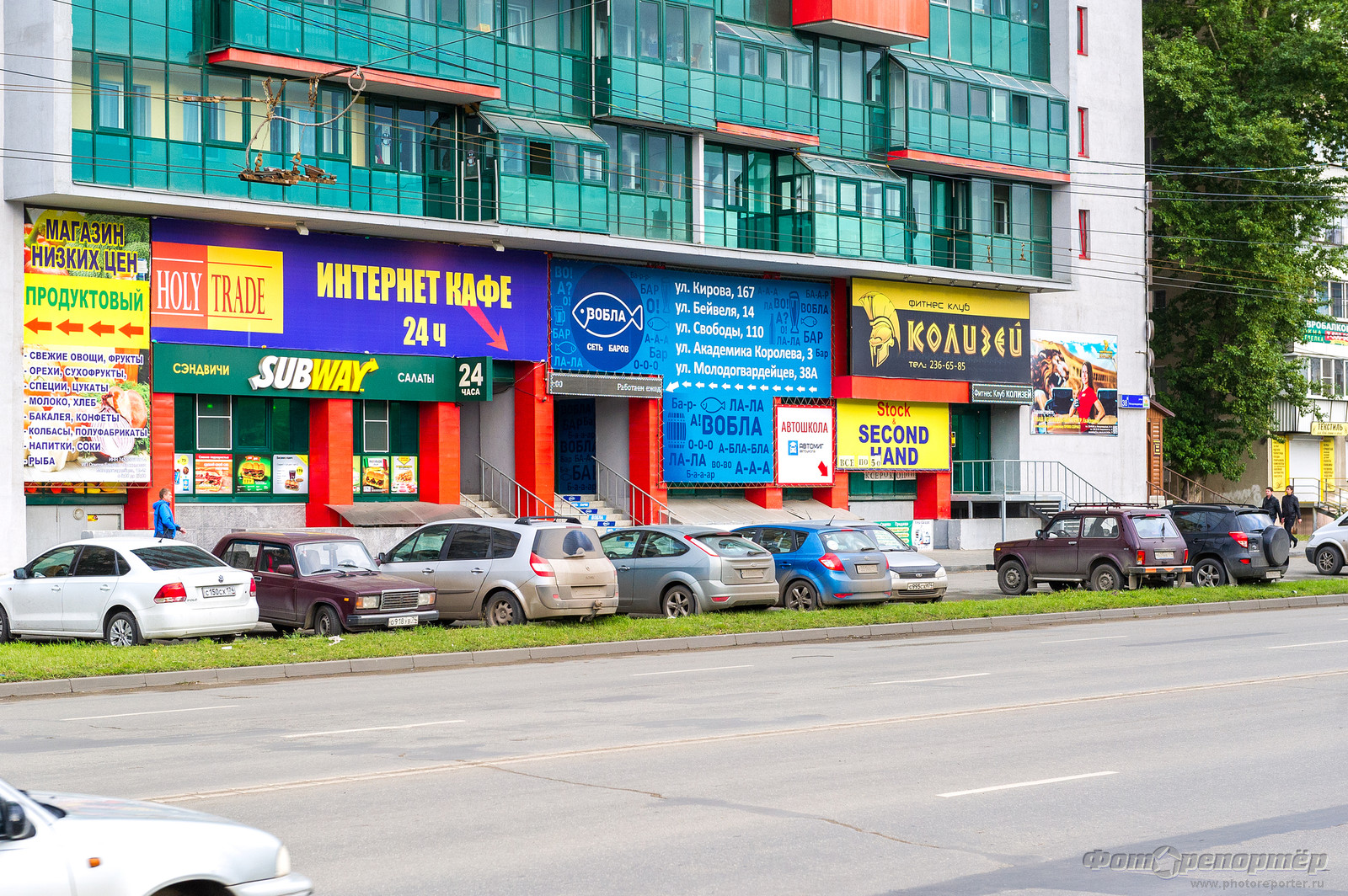 17 аляпистых вывесок. Вот интересно, кто дал им разрешение на эту пахабщину, которой они обклеили дом прямо со стороны главной улицы? Существует в городе какой-то контроль за этим?