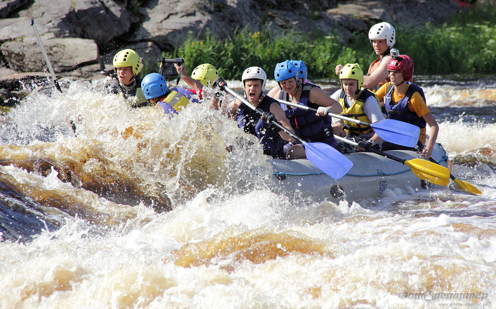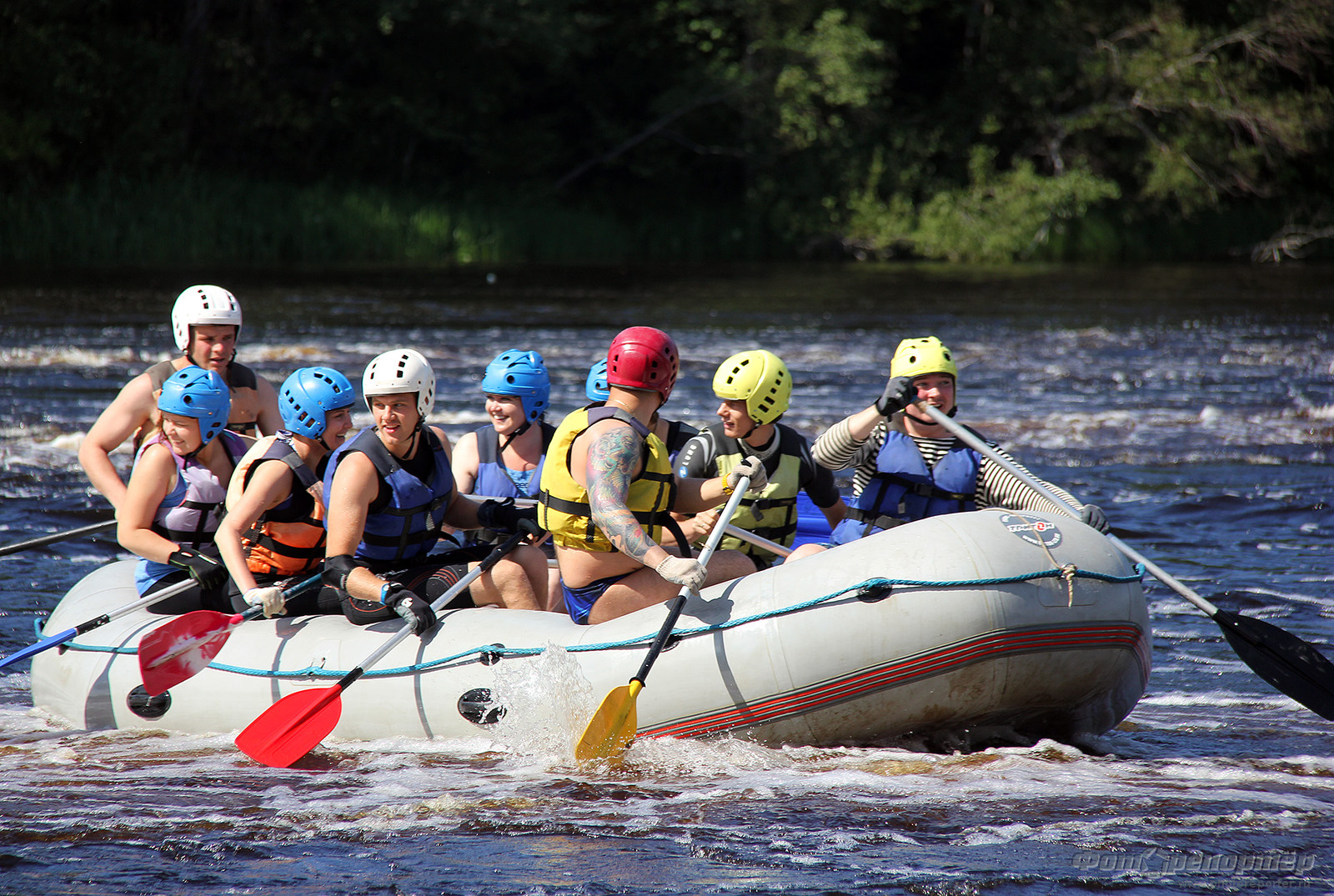 Несколько фотографий, которые я сделал в июле 2012 года во время корпоративного похода РИА Новости по реке Шуе в Карелии. Павел в белой каске и синем жилете.