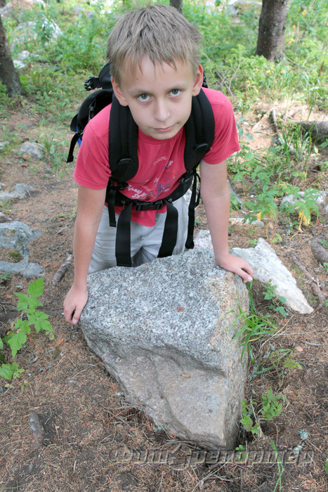 Около гранатового камня. Темные горошины внутри этого камня - полудрагоценный минерал гранат.