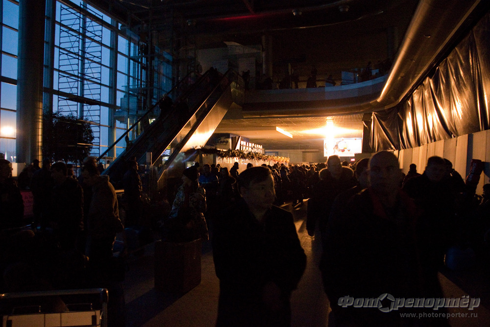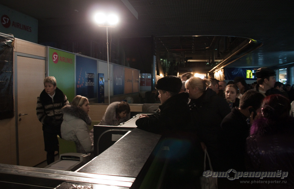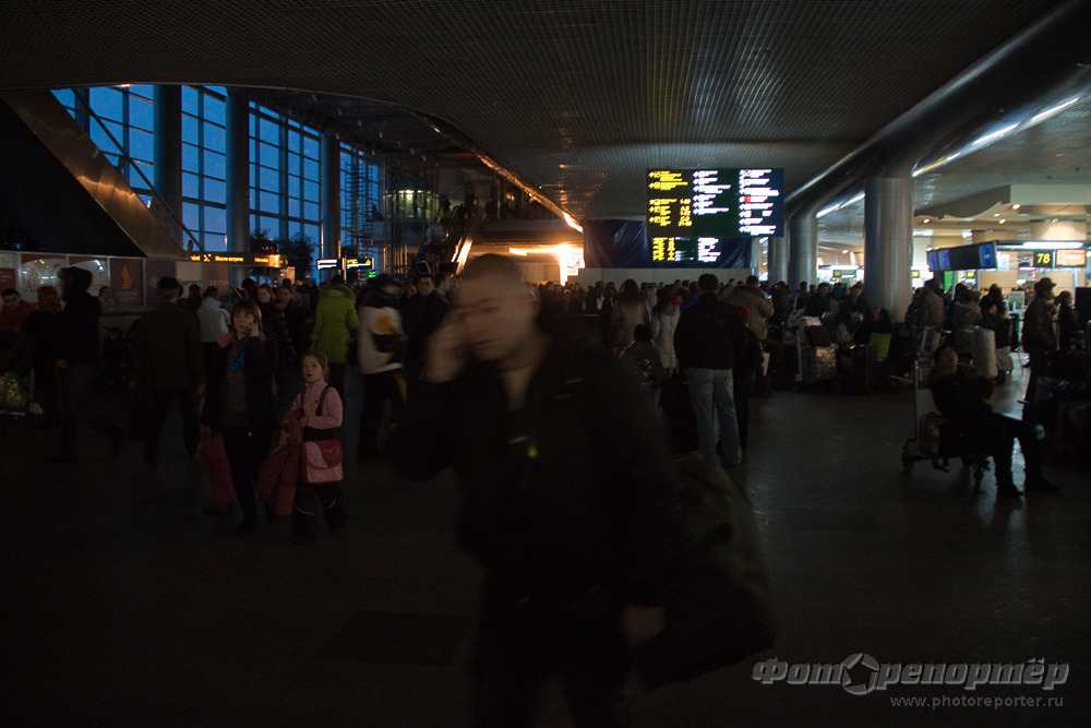 Из-за погодных условий вышли из строя две подстанции. В результате, в аэропорту нет света, самолеты не летают.