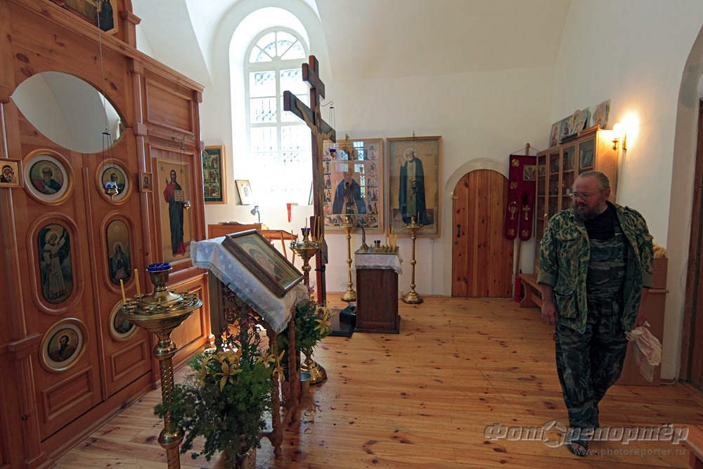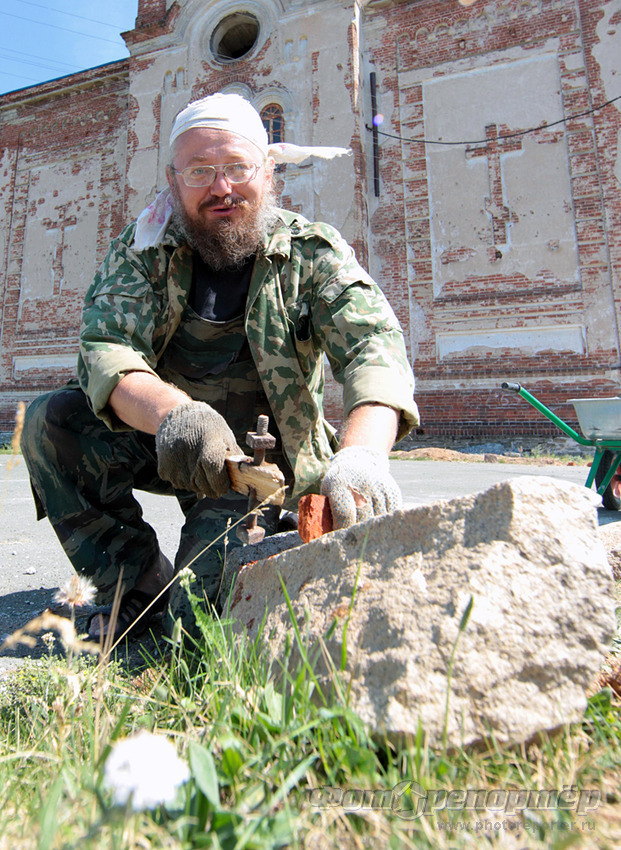 Отца Игоря я застал за строительством непопираемого места. Это такой колодец, куда сливают освященную воду, бросают огарки свечей.