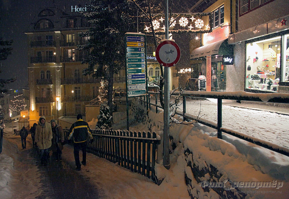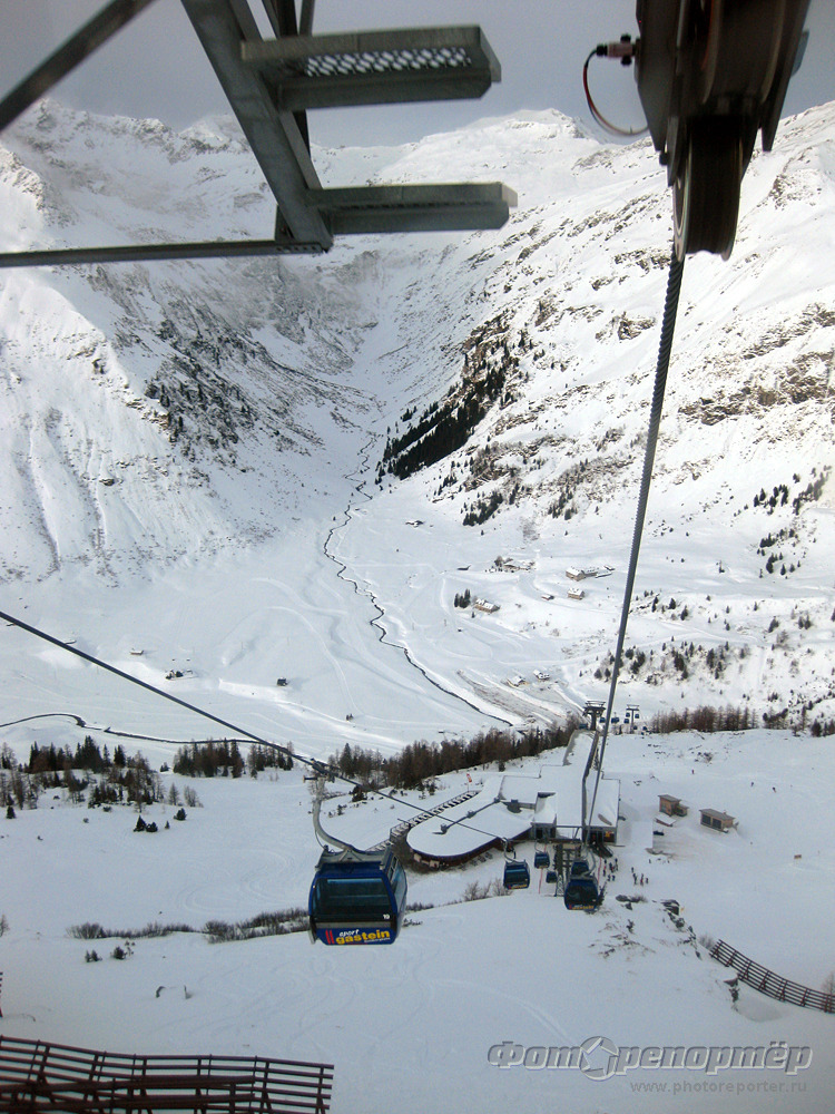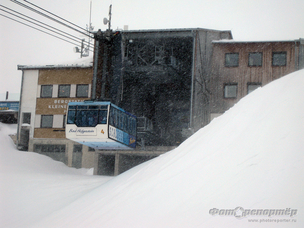Чтобы попасть к подъемнику на Stubnerkogel, нужно пройти на другую сторону железной дороги. Днем здесь довольно людно. Пол застелен ковролином.