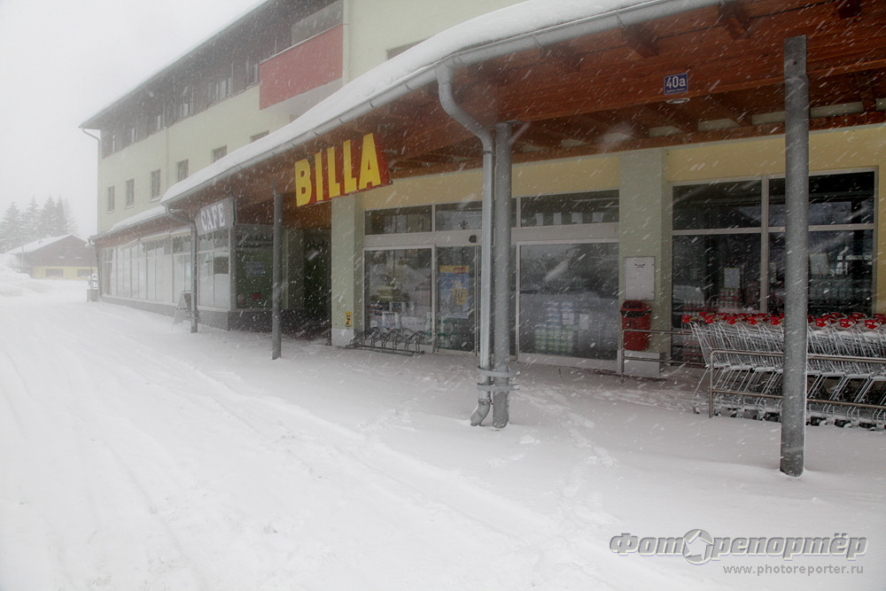 Супермаркет Billa на окраине Бад Гаштайна закрыт из-за сильного снегопада.