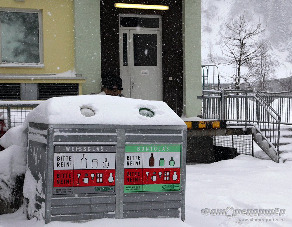Надпись на контейнере: Weissglas - белое стекло, Buntglas - цветное стекло, Bitte rein! - пожалуйста чистое, Bitte nein! - пожалуйста нет. Бад Гаштайн (Bad Gastein).