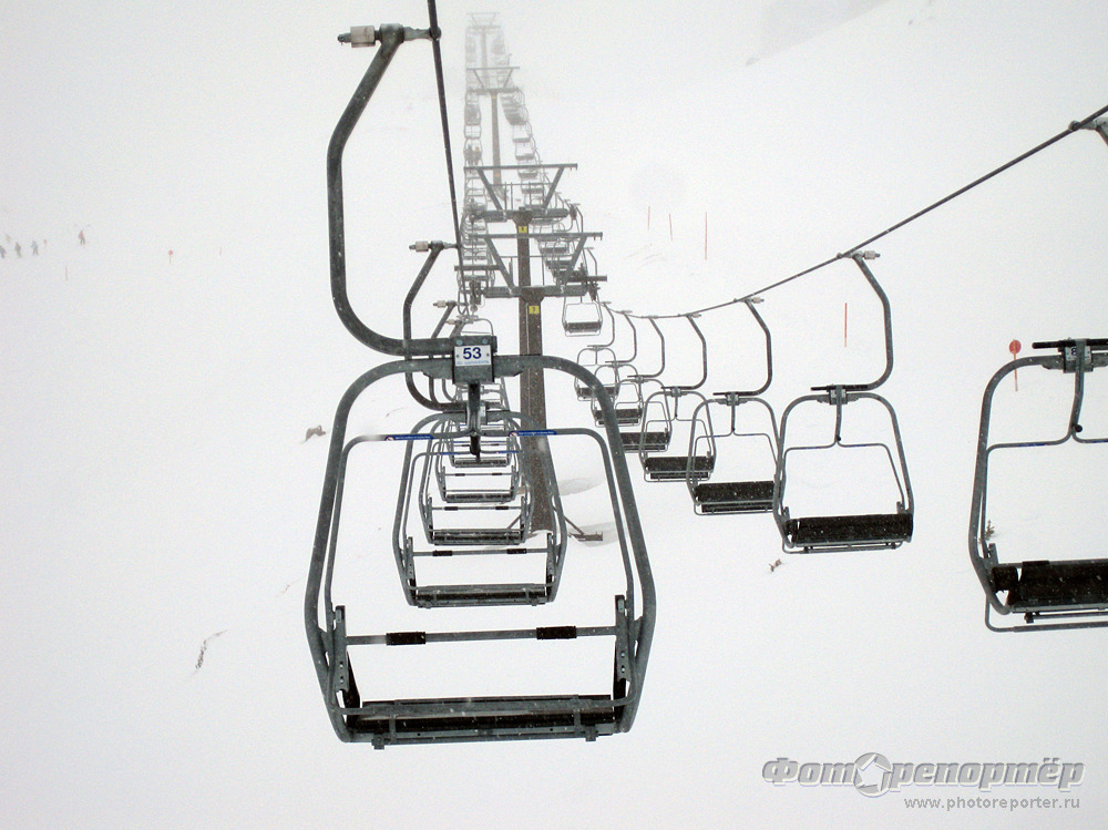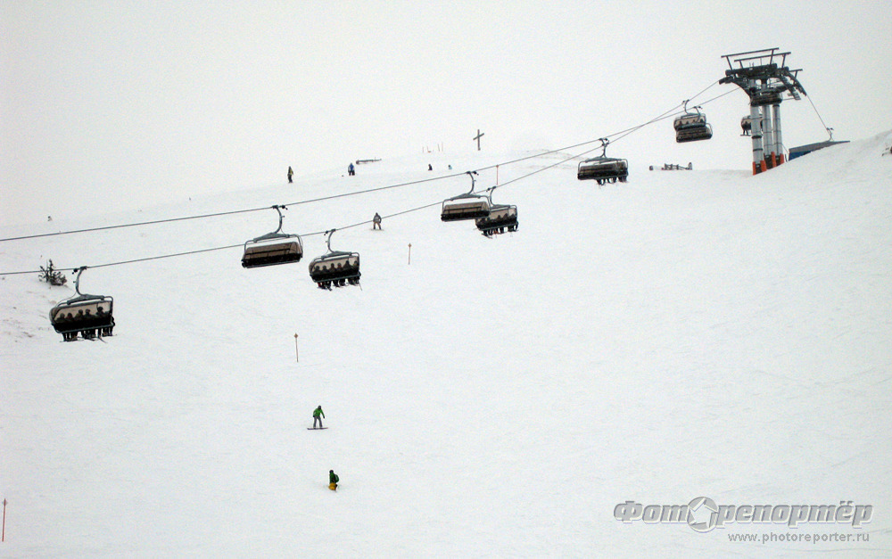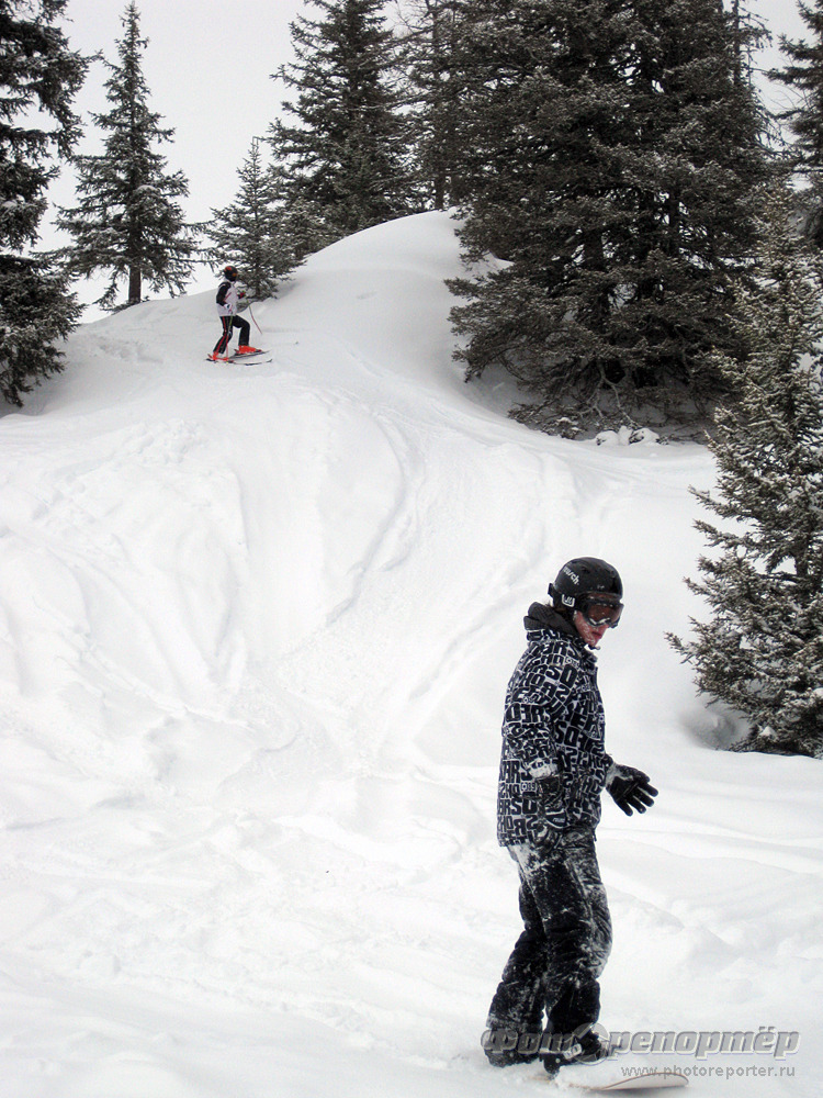 И неподготовленная трасса под ним. Указатели ромбиком означают, что это трасса не готовится ратраками, а только размечается. Предназначена для любителей фрирайда и острых ощущений.
