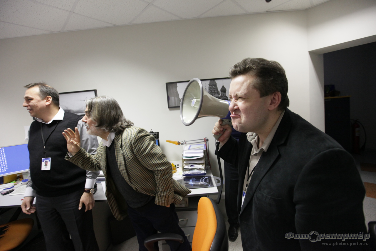 Андрей Попов и Виктор Панов. Для просмотра нужны анаглифные очки - это такие, у которых одно стекло синее, другое красное.