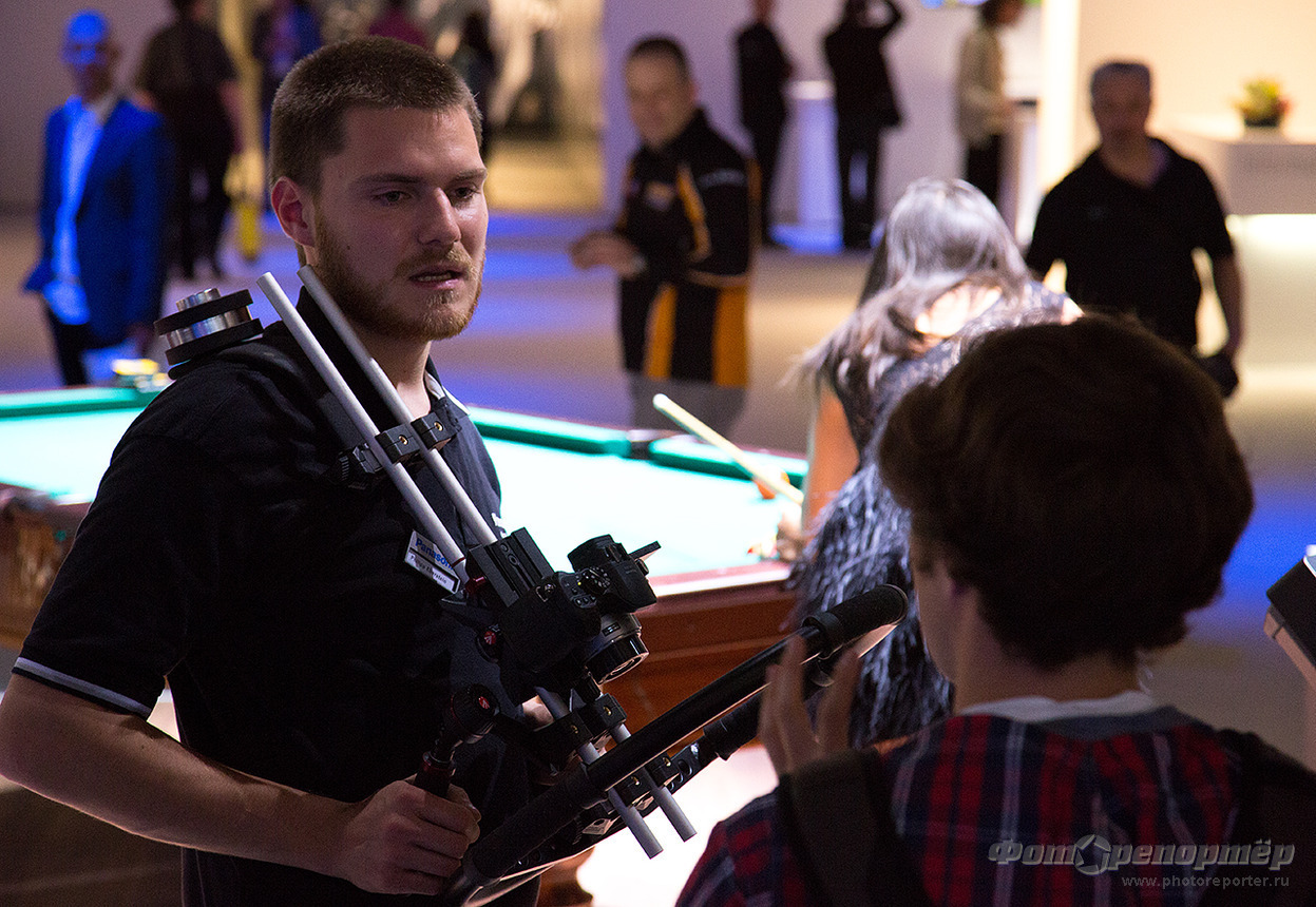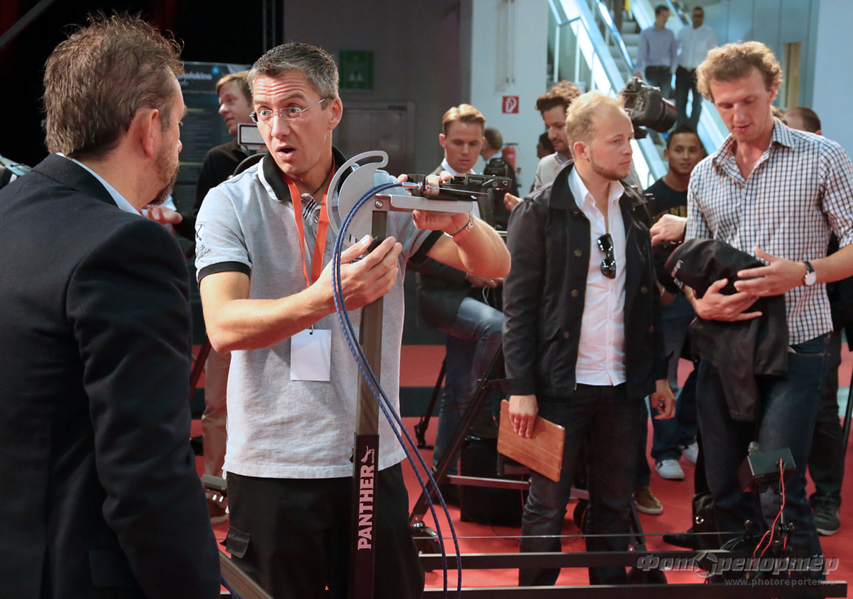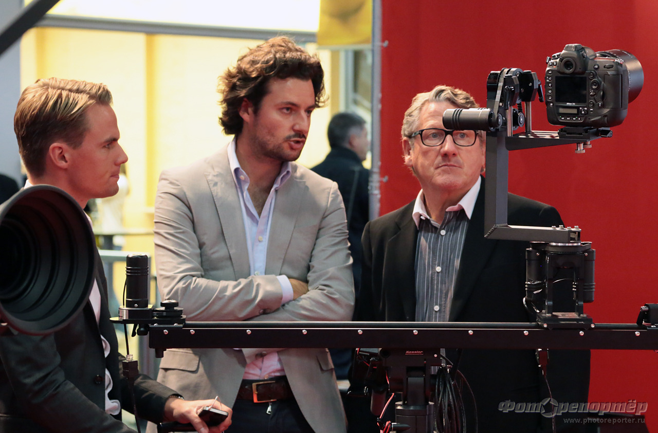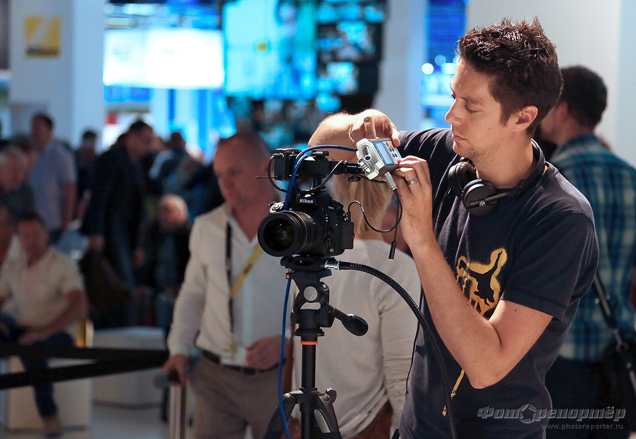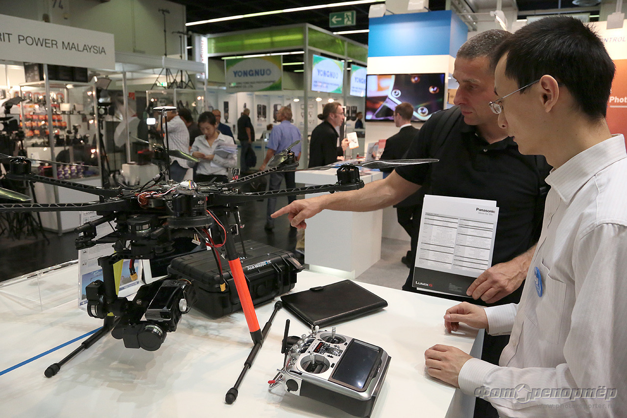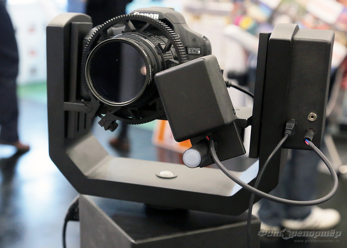 На многих стендах постоянно происходит какая-то движуха. То человек рассказывает о новой фотокамере, на другом демонстрируют роботов для съемок таймлапсов. У больших фирм выставлены и фотоаппараты и объективы - можно попробовать. А где-то - китайский цирк или музыканты.