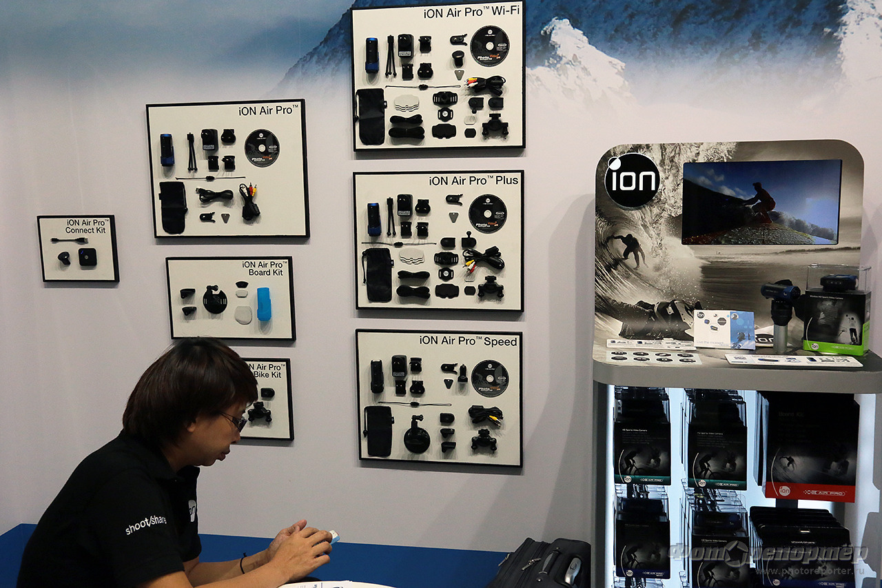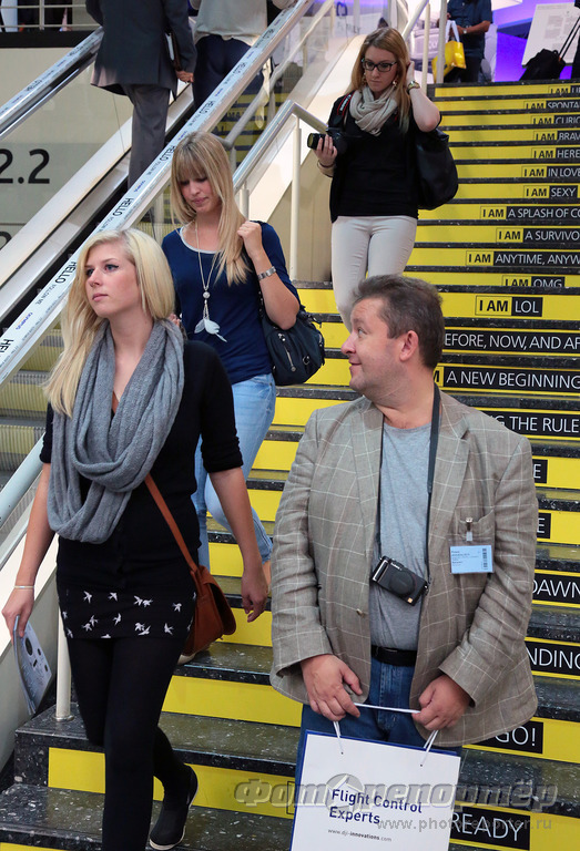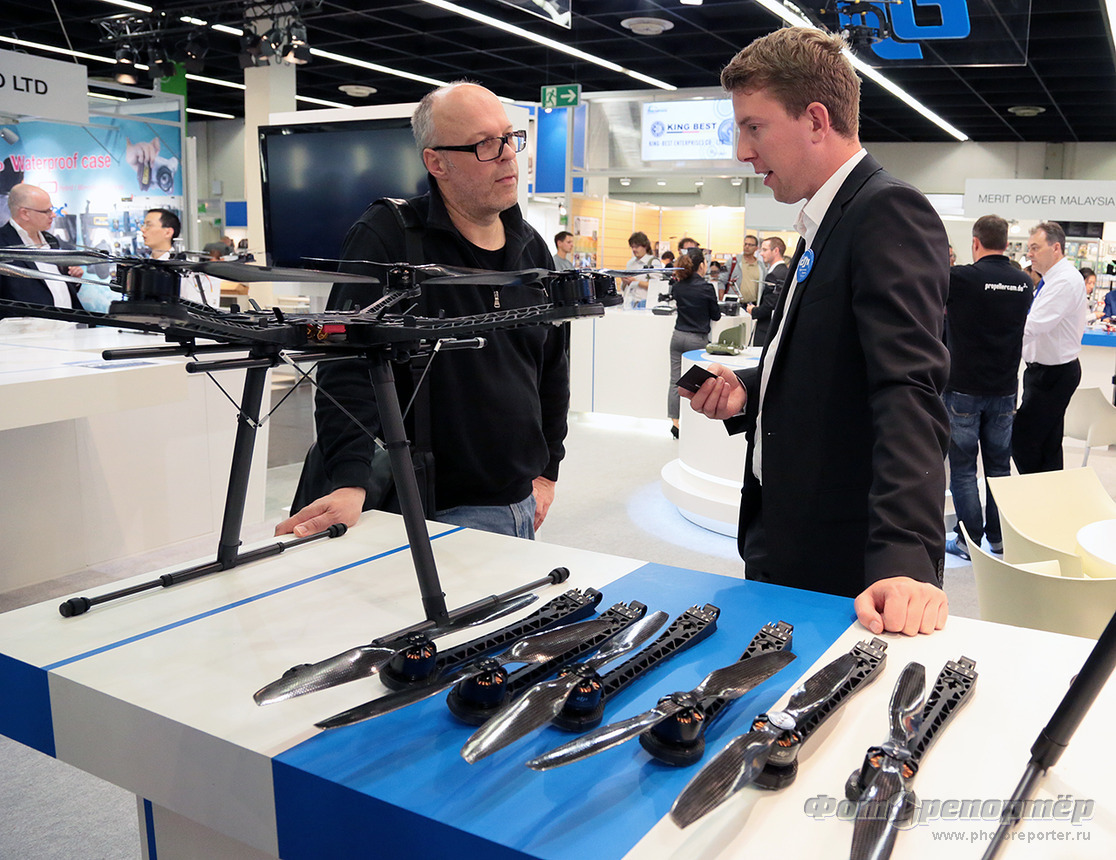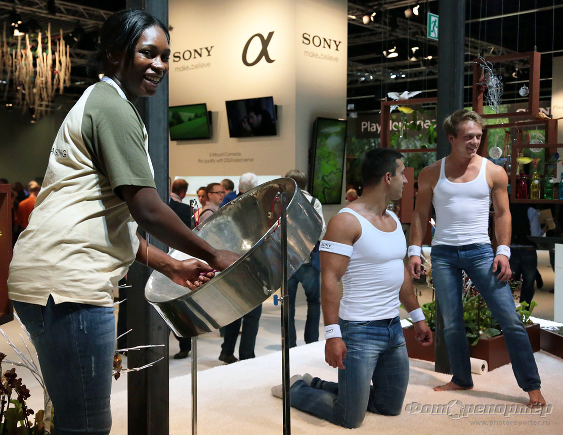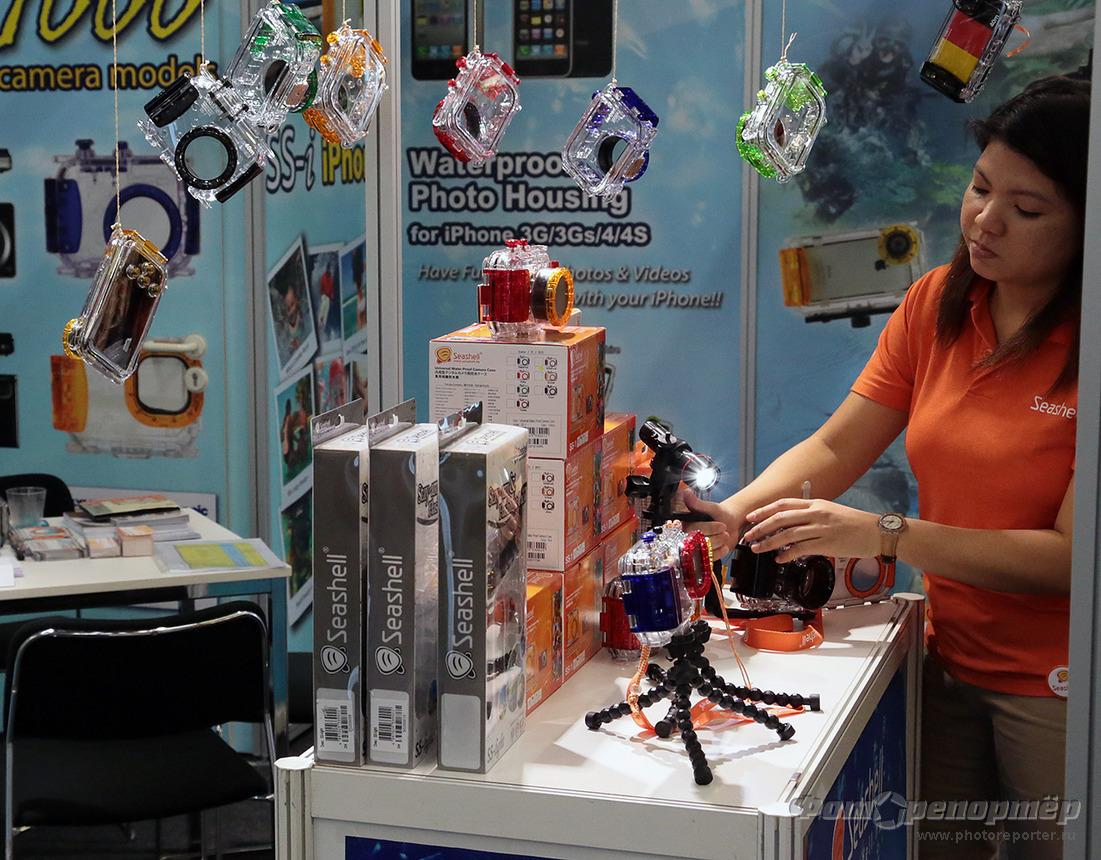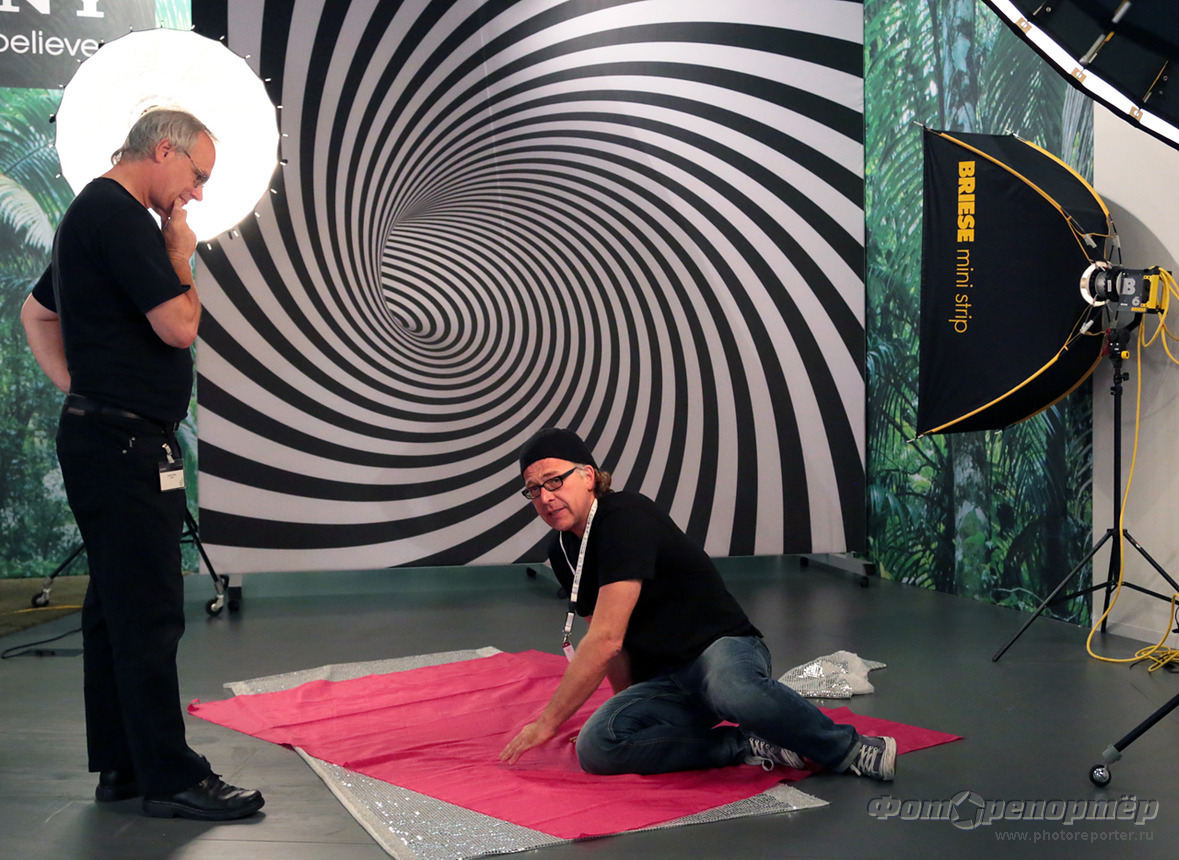 На многих стендах постоянно происходит какая-то движуха. То человек рассказывает о новой фотокамере, на другом демонстрируют роботов для съемок таймлапсов. У больших фирм выставлены и фотоаппараты и объективы - можно попробовать. А где-то - китайский цирк или музыканты.