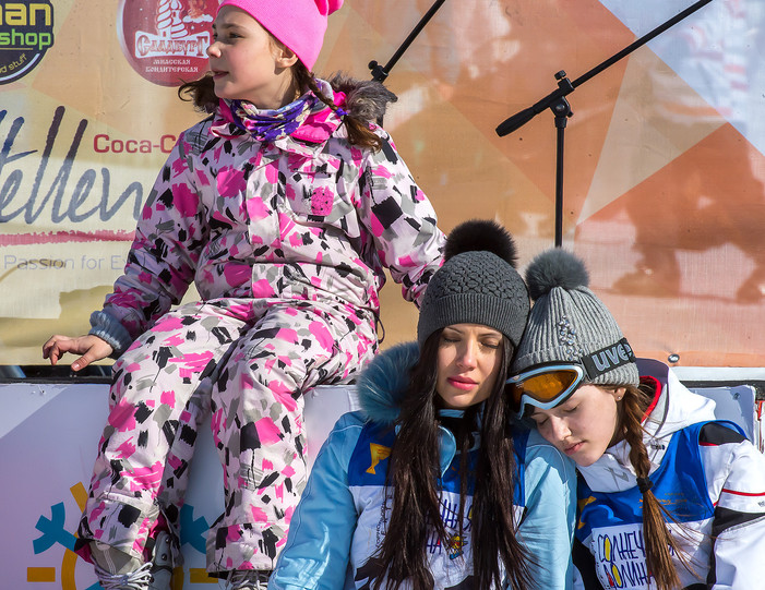 В этот день проходил некий Кубок губернатора. Говорят, в пятнадцатый раз, то есть пятнадцатый год уже. Не судите строго тех спортсменов, что на фото. Они вовсе не спортсмены. Это соревнования простых любителей покататься. Типа, семейные старты. Там даже детки участвовали. Даже шетилетние детки. Прикольные такие, каска больше его самого. Я бы и сам с удовольствием поучаствовал. Надо команду собрать. Но больше мне понравились летающие сноубордисты. Летали они сами по себе, безо всякх соревнований....