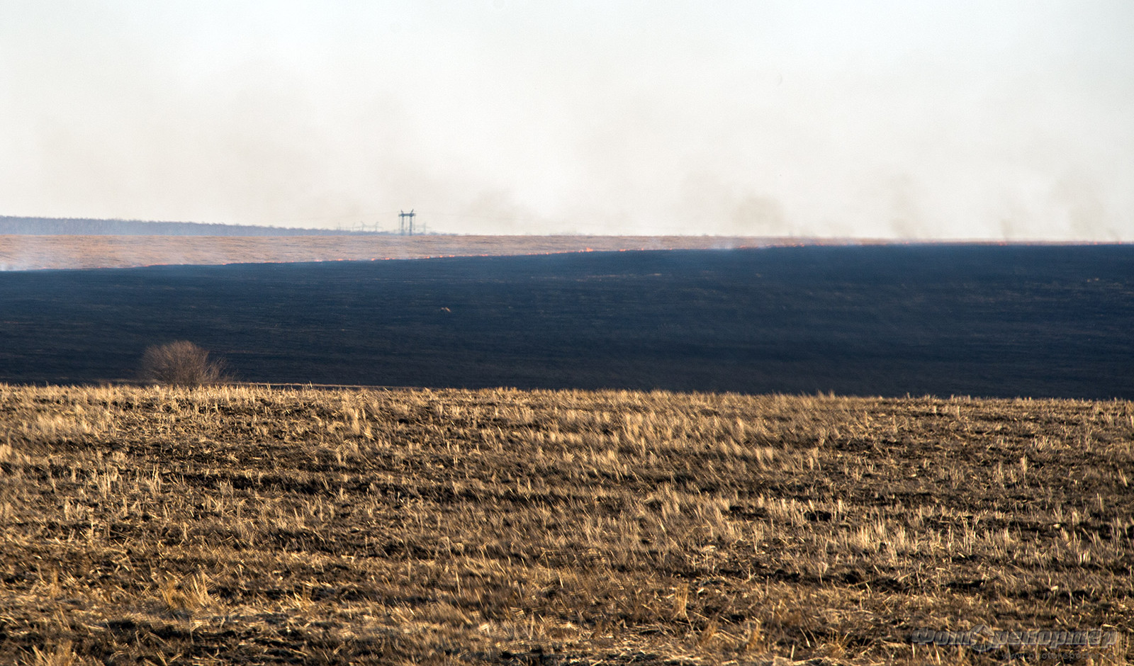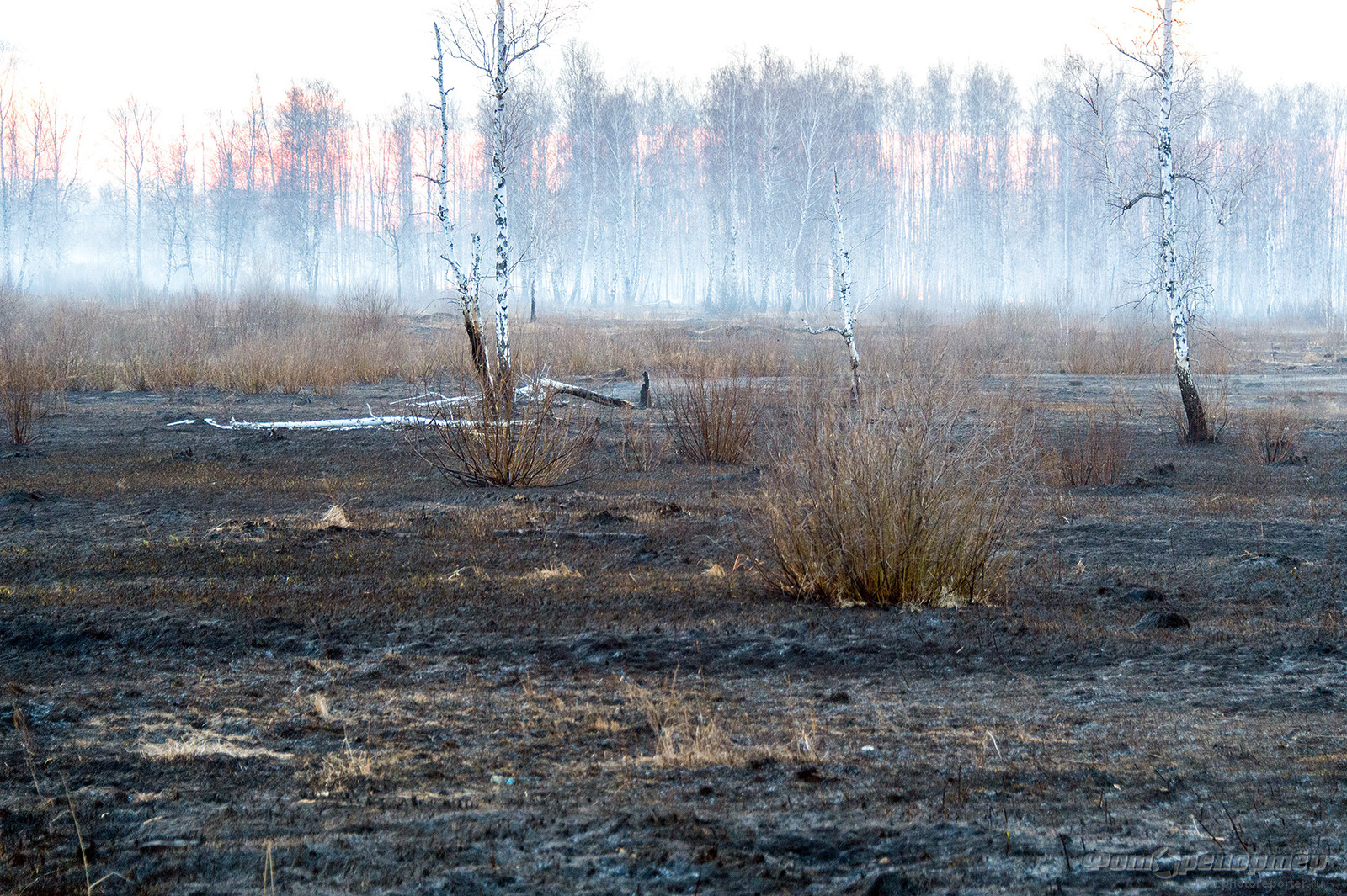 В районе Лазурного выгорело всё до горизонта. Чернота на много километров. Стоят одинокие обугленные деревья и дымят. Можно снимать фильм-катастрофу.