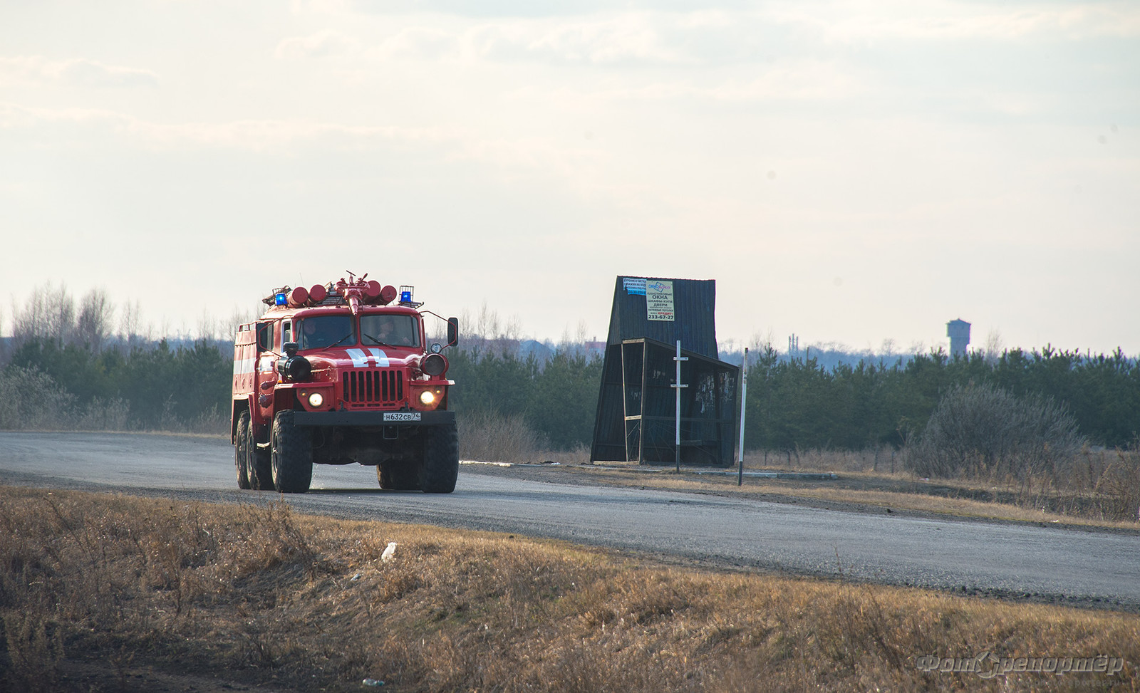 Пожарная машина не МЧС, а местного детского интерната. 2 человека, водитель и, непосредственно, пожарный.