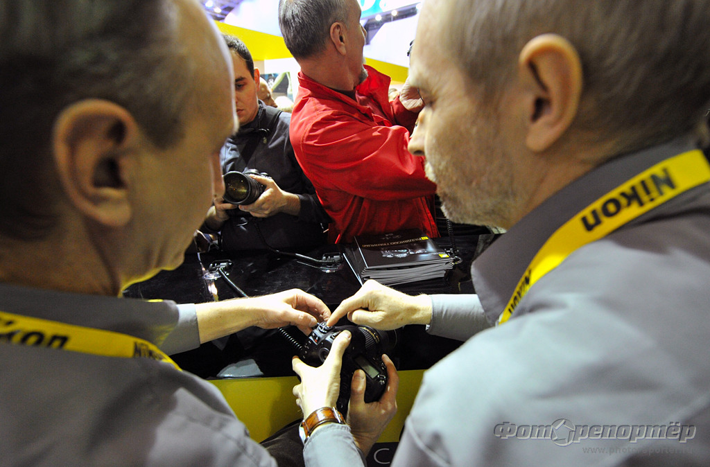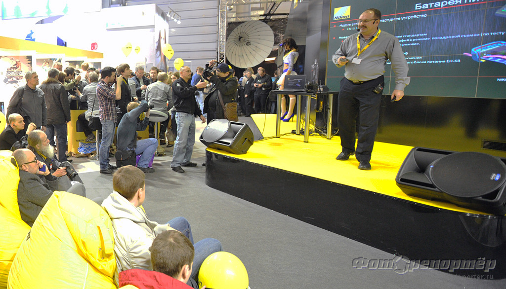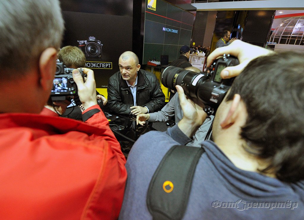 Удивила стойкость Валеры Алексеева, главного по Никону в России. Он несколько часов без перевыра рассказывал о новинках технологий Никон. Причем рассказывал, этак по-свойски. У него, конечно, на экране была какая-то презентация, видимо заставляет корпорация, понимаю, но никакой официальщины в его речи не было. Вот так как я бы вам толковал на кухне, какая камера лучше, так и он рассказывал людям о новых Никонах. И благодарный народ слушал.