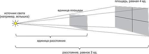 Например, увеличение расстояния между вспышкой и объектом в 2 раза приводит к уменьшению освещенности объекта в 4 раза. Если указанные расстояния увеличить в 3 раза, то освещенность уменьшится в 9 раз и т. д. При уменьшении расстояний наблюдается обратная зависимость.