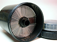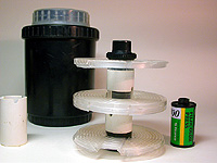 Поскольку фотолюбители чаще всего используют катушечные фотопленки, рассмотрим обработку именно таких пленок. Многие фотографы-профессионалы и фотографы-любители считают, что наиболее практичным и долговечным устройством для проявления небольшого количества катушечных пленок является бачок из нержавеющей стали с проволочными катушками. Но в продаже чаще всего можно было найти бачок из пластмассы. Такие бачки имеют цилиндрическую форму состоят из трех частей: корпуса, крышки и разъемной катушки со спиралью. На спираль в темноте наматывается пленка, затем катушка помещается в бачок и закрывается крышкой. Зарядка катушек в темноте не вызывает особых трудностей, если попрактиковаться некоторое время в освещенной комнате с катушкой испорченной пленки, как это сделал автор при подготовки фотографий для статьи. Зарядочный конец пленки заправляется в щель катушки, после чего она наматывается по часовой стрелке так, чтобы нижний край попадал между витками спирали. Нужно следить за тем, чтобы в одном витке не оказалось два слоя пленки – при проявке они слипнутся и часть кадров пропадет.