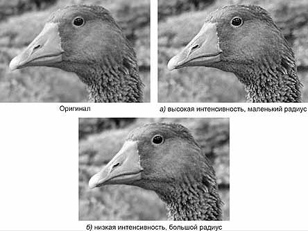Рис. 4.2. Использование различных параметров фильтра Unsharp Mask (Нечеткая маска) улучшает тонкие детали (а) и локальный контраст (б) по отдельности