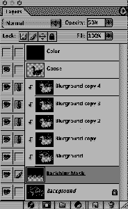Когда работа будет закончена, можно будет увидеть, что эти действия отделили самого гуся от фона. Теперь можно размывать фон, чтобы имитировать глубину экспозиции. Изображение гуся, размещенное на собственном слое, будет функционировать как маска сверху, поэтому на нее смазывание не повлияет. Стек слоев должен выглядеть, как показано на рис. 4.7.