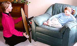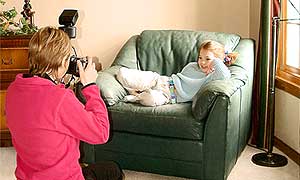 Каждый раз, гуляя по местной рыночной площади, я прохожу мимо кабины моментальной фотографии, столь популярной среди горожан в наше время. И всегда испытываю глубочайшую симпатию к фотографам, которые в большинстве случаев имеют дело с сущим кошмаром. Пока они отчаянно пытаются заставить улыбнуться нервного ребенка или саркастически настроенного подростка, родители осложняют их жизнь, ругая своего отпрыска или давая фотографу непрошеные советы. Мое уважение к людям, которые каждый день выдерживают подобный ад, не имеет границ и я вовсе не собираюсь лишать их честно заработанного куска хлеба. Но при этом я твердо убеждена, что такие же качественные портреты вполне можно сделать и дома, сэкономив свое время, деньги и нервы. Мало того, так как в знакомой домашней обстановке человеку намного проще расслабиться, не погрешу против истины, утверждая, что ваши снимки будут даже лучше сделанных в фотолаборатории! Секрет домашних портретов, как и многих других вещей в этой жизни, состоит в их простоте. Вам не потребуются дорогие студийные лампы или вычурный фон, разрисованный персонажами из мультфильмов или фальшивым изображением пляжа. Вполне достаточно дивана, расположенного недалеко от окна, как показано на рис. 3.8. При этом крайне желательно, чтобы диван не был обит тканью с мелким рисунком, так как подобный фон отвлекает внимание от объекта съемки.