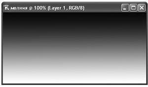 МолнияИзображение молнии, электрического разряда или звезды — излюбленные эффекты многих дизайнеров. Попробуем и мы создать нечто подобное, тем более что это совсем несложно. Командой меню File > New (Файл > Новый) создаем новый документ с размерами 400 x 200 пикселов. Цвет фона пока можно сделать прозрачным ( Transparent ). Устанавливаем цвета по умолчанию. Цвет переднего плана ( Foreground color ) должен быть черным ( Black ), а цвет фона ( Background ) — белым ( White ). Затем на инструментальной панели выбираем инструмент Gradient (Градиент). На его панели параметров настраиваем вид градиента: линейный тип градиента ( Linear Gradient ) и направление заливки — от переднего плана к фону ( Foreground to Background ). Градиентом с заданными параметрами заливаем наш документ таким образом, чтобы темная его часть оказалась сверху.