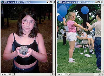 Как уже отмечалось, описанный прием можно использовать не только для коррекции цвета кожи. Он годится для любого случая, когда известна формула цвета для одной или нескольких эталонных хроматических точек на изображении. Примечание. В практике автора был случай, когда цветокоррекцию серии снимков пледов, сделанную для каталога (при неподходящем, как выяснилось впоследствии, освещении), пришлось выполнять по образцам, полученным путем сканирования тех же пледов. |