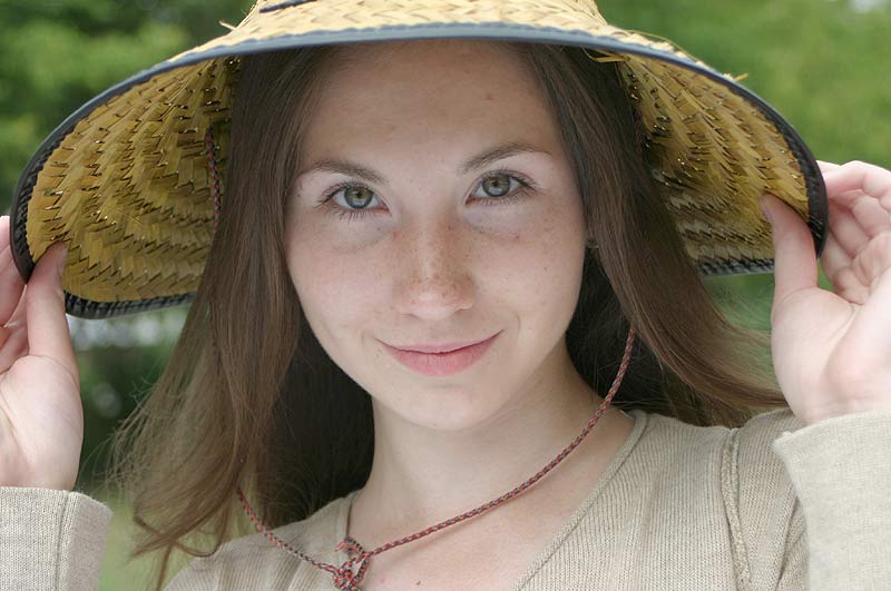 Рассмотрим фотографию. Должна ли шляпа затемнить лицо? Должна, но не затемнила. Если внимательно присмотреться, то в глазах можно увидеть елеразличимое отражение экрана.